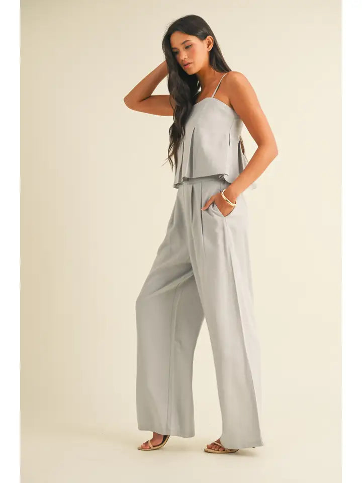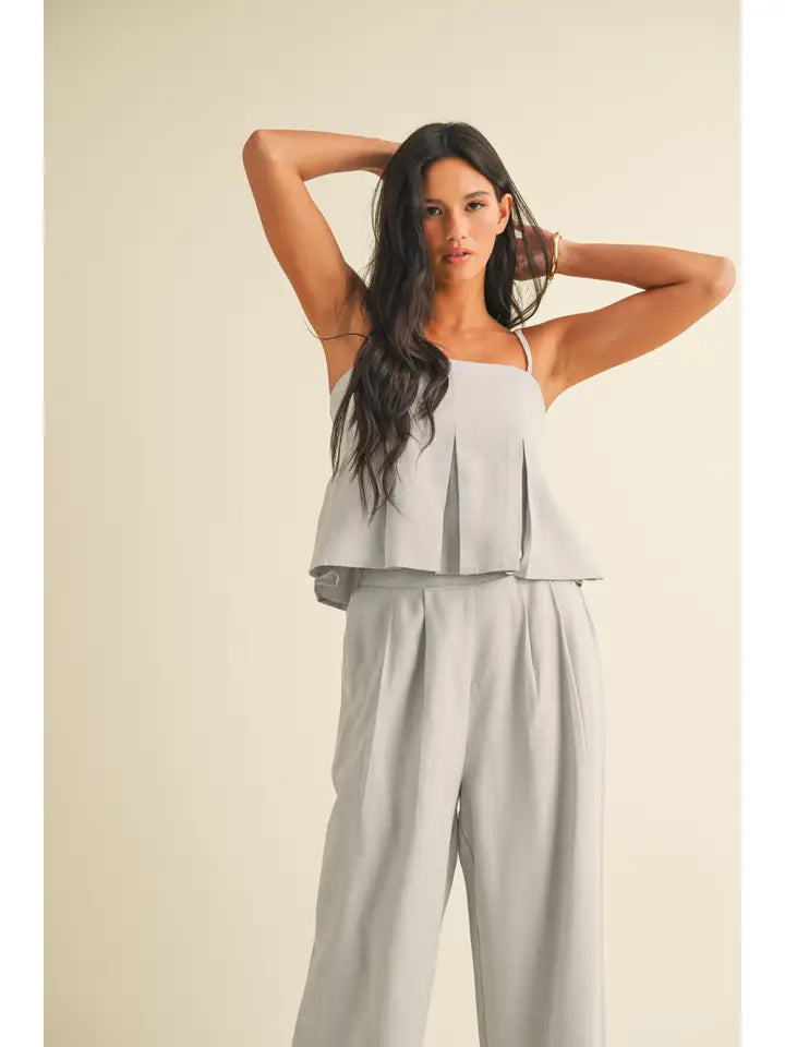 Slip into effortless elegance with this breezy blue tank, featuring chic ruching down the back for a touch of dimension and movement. Style it solo or pair with our matching trousers (sold separately) for a coordinated look that's ready for anything!