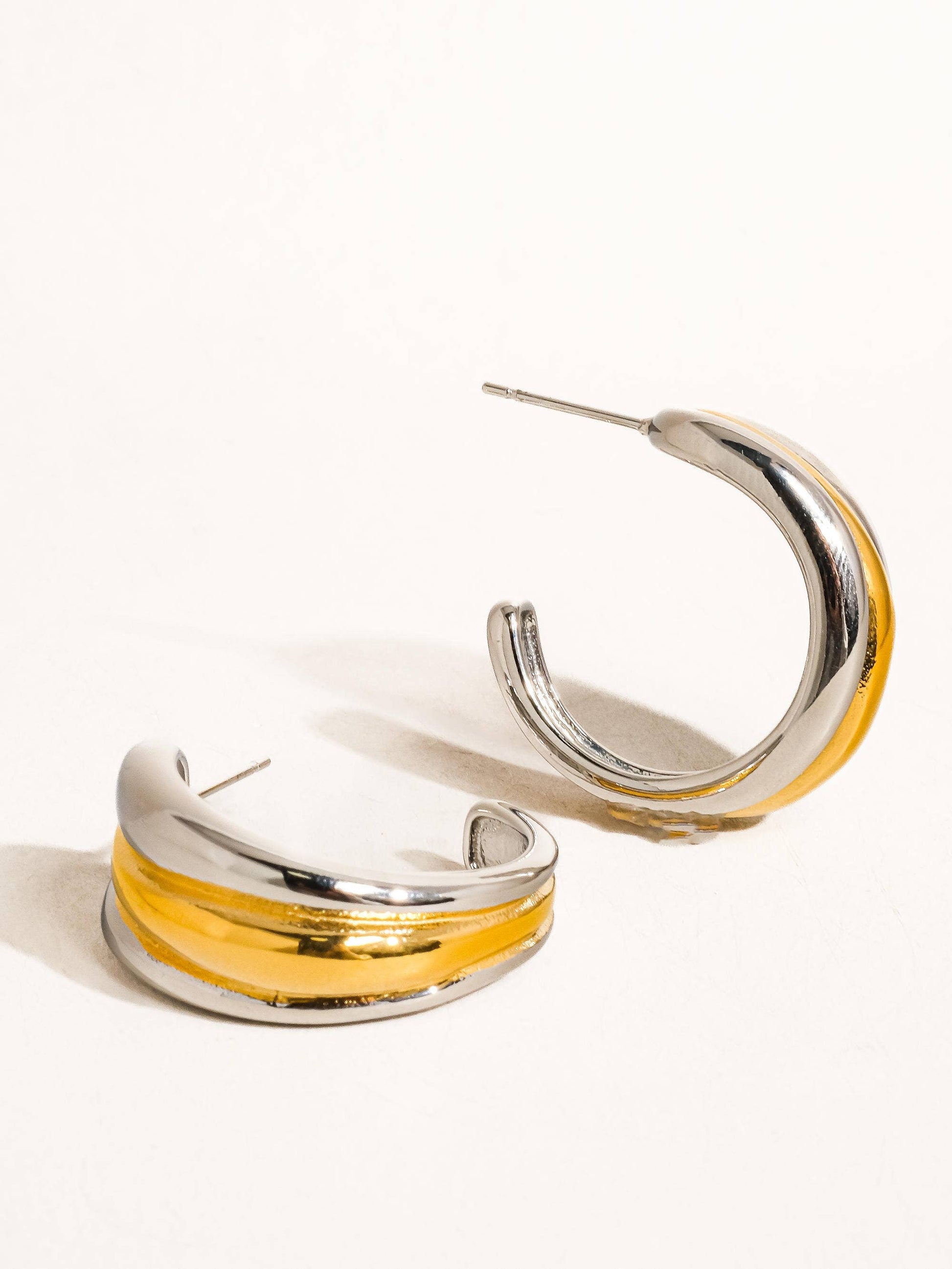 18K Non-Tarnish Multi C Hoop Earring 18K Gold Plating Stainless Steel